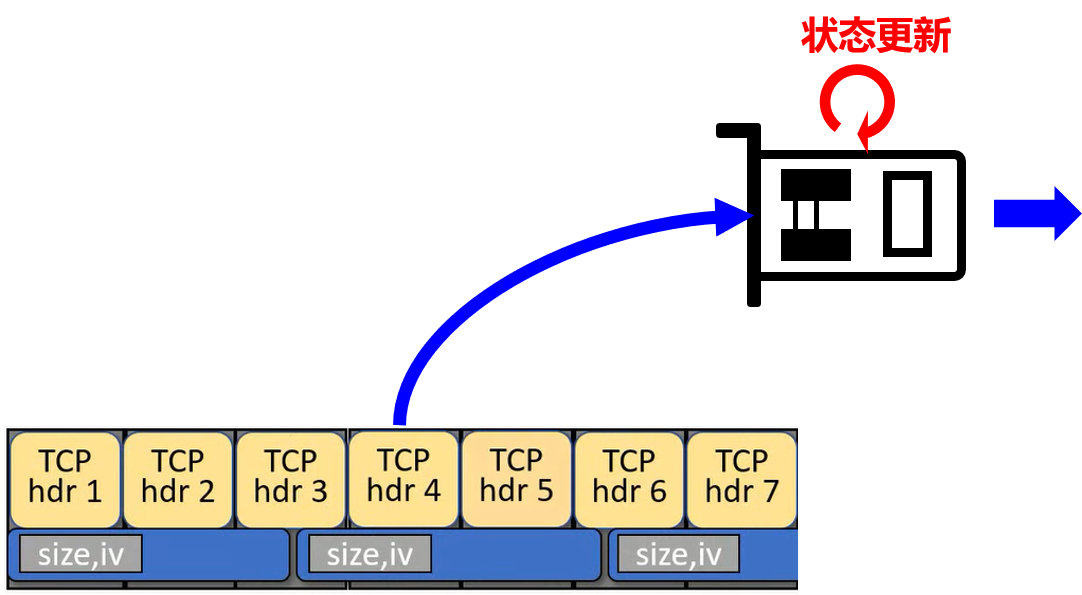 网卡上对每一条L5P消息都维护静态状态和动态状态,静态状态就是指密钥,动态状态包括期望的TCP包序列号、当前包在当前消息中的偏移、当前消息大小和当前消息的IV。